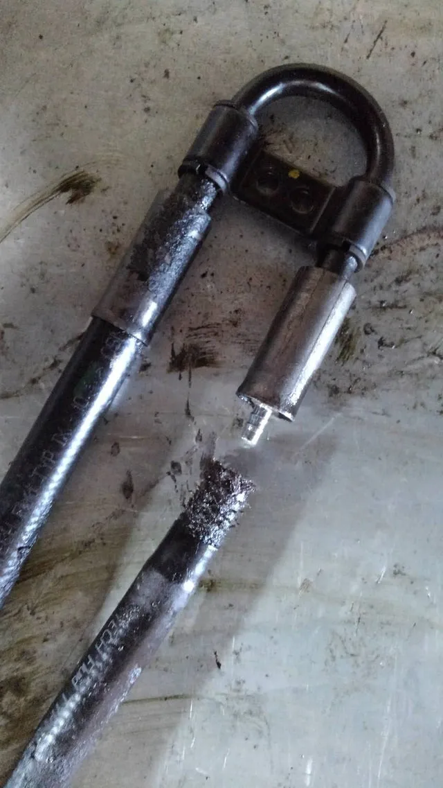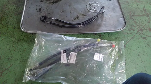 点検の結果、パワーステアリングのホースとパイプのつなぎ目(カシメ部分)が劣化で外れ、パワーステアリングオイルが全部抜けてしまい効かない状態となっていました。