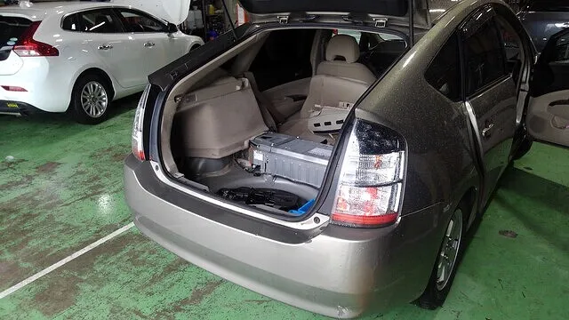 駆動用のハイブリッドバッテリーのほかにも、補器(始動用)バッテリーがトランク内に取り付けされていて、通常のガソリン車のバッテリーよりは長めの寿命に設定されていますが補器バッテリーの不良で入庫されるお客様も多いので3年を目安に交換おすすめします。