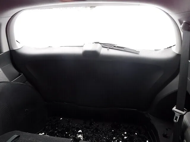 フロントのガラスの場合は飛び石等で割れてしまっても2枚の合わせガラスになっているので、粉々になってしまうことはありませんがバックドアガラスは合わせガラスになっていないので粉々に割れてしまいます。