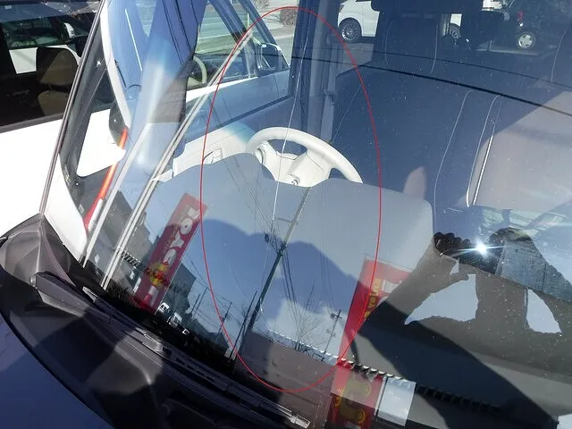 特にガラスの縁15~20センチ以内(ボディに近い部分)の飛び石キズ・ヒビは大きな割れにつながりやすいので注意が必要です。